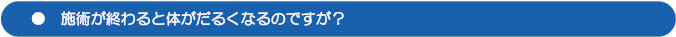 当整体は、筋硬結(トリガーポイント)という筋肉のしこりを解し、血液を戻し老廃物を流すように施術を行います。その為、施術前までは流れていなかった部分に血液が流れだし、一時的にだるさを感じるようになります。元々状態が悪い場合は、だるさ以外に下痢や軽い熱等も出る事がございます。この状態では老廃物を排出する作用が働いておりますので、水分を多く取り、激しい運動を避ける事をお勧め致します。これは、好転反応といい、身体が良くなる前の処理反応ですので、ご安心下さい。![]()