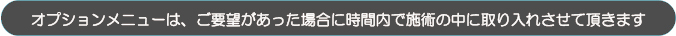 : お着替えのご用意はありませんので、そのままの格好で施術を行わせて頂きます。厚すぎる衣類やスカートはご遠慮下さいませ。