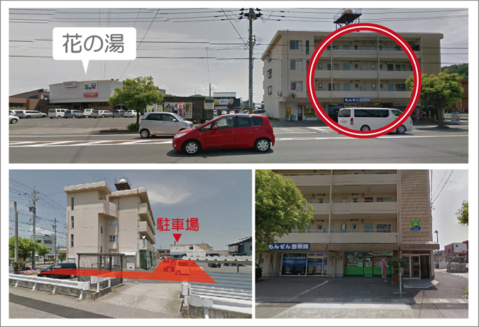 建物裏に隣接する駐車スペースに車を停めて下さい。